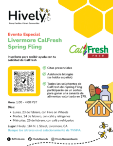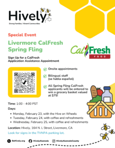 Join us for a special Spring Fling event at Hively’s Livermore office! We’ll be offering free onsite CalFresh application appointments, with bilingual staff available to assist you.