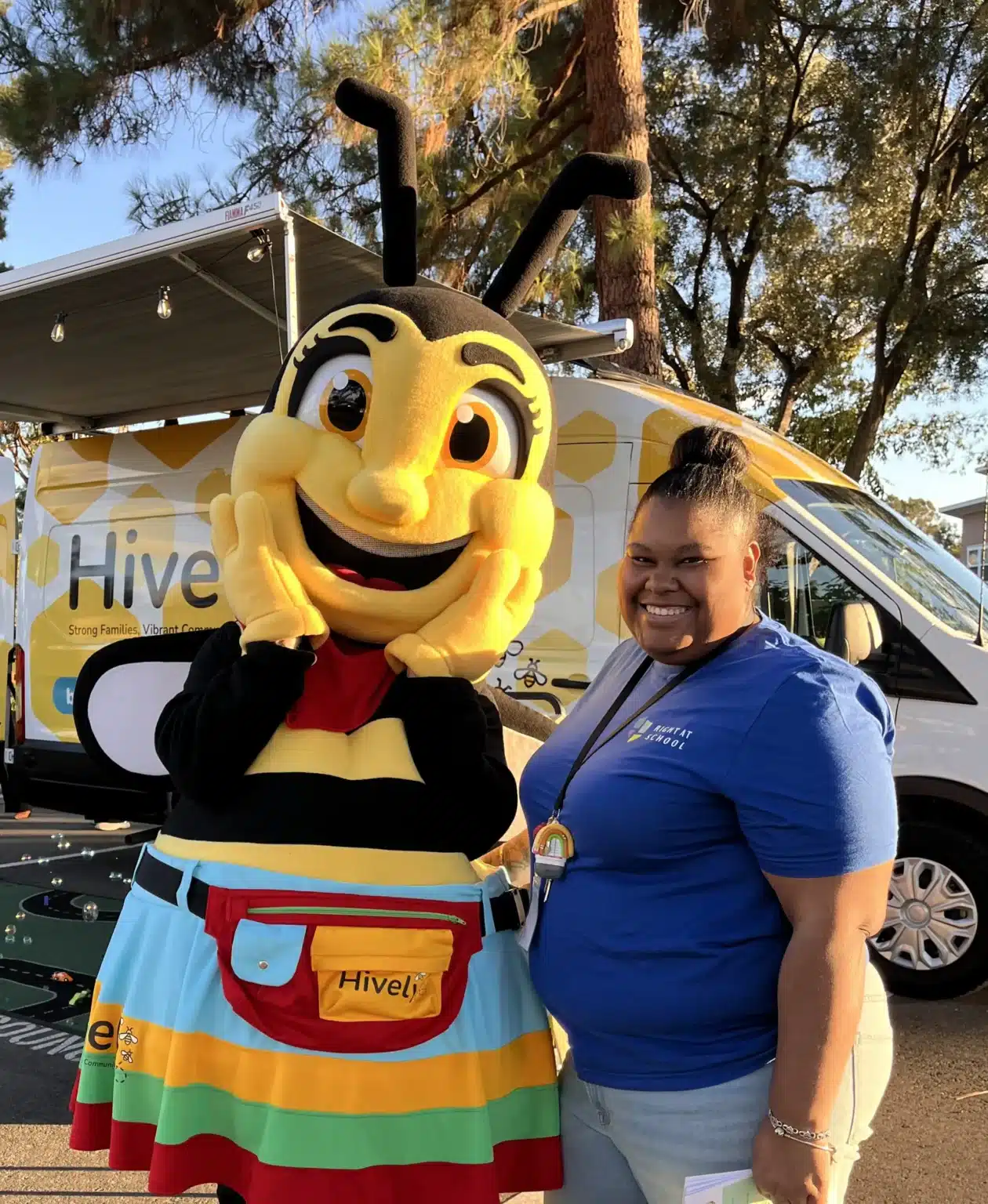 Stocked with essentials such as diapers, wipes, children’s clothing, books, and more, the Hive on Wheels is a flexible solution for meeting families where they are. Every Hive on Wheels event includes an inviting and safe place for kids to wiggle and play, while parents and caregivers connect with Hively staff to learn about our services.